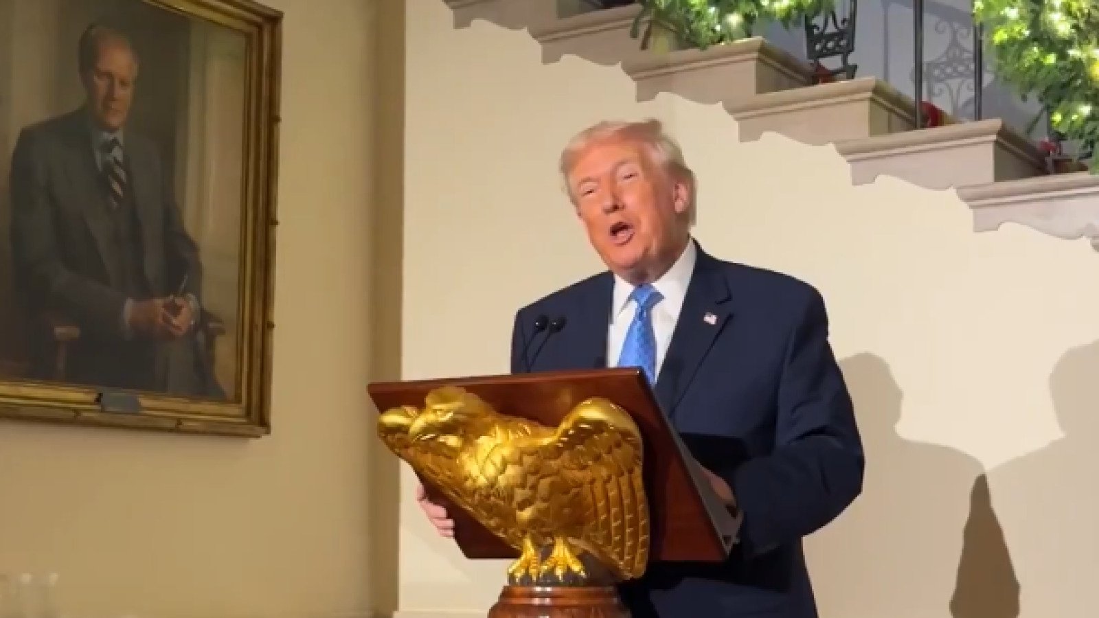 🚨 BREAKING: Awesome moment as President Trump makes an appearance at the first White House CHRISTMAS PARTY 🎄