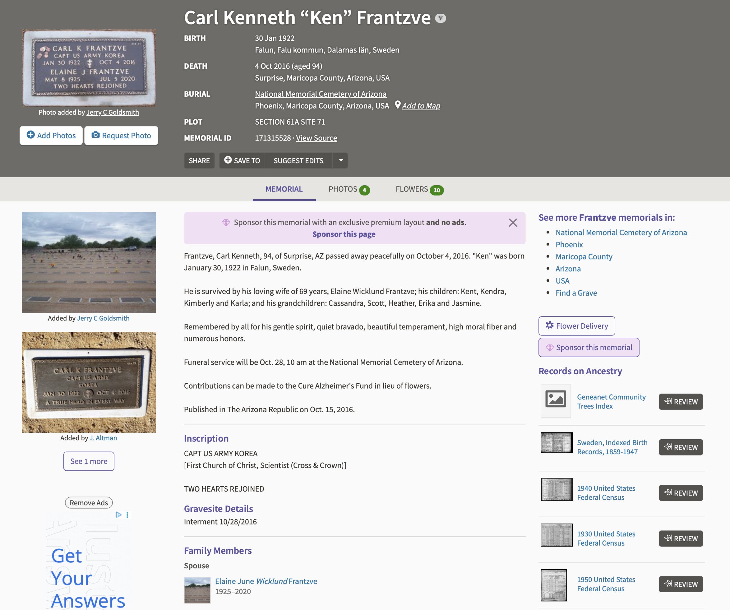 The link goes to a grave archive which you can access here: https://www.findagrave.com/memorial/171315528/carl_kenneth-frantzve