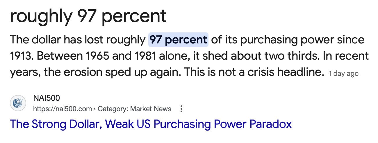 The “Fed” which has inflated and destroyed our US Dollar so badly that the purchasing power of a dollar in 1913 has declined by 97% compared to today?