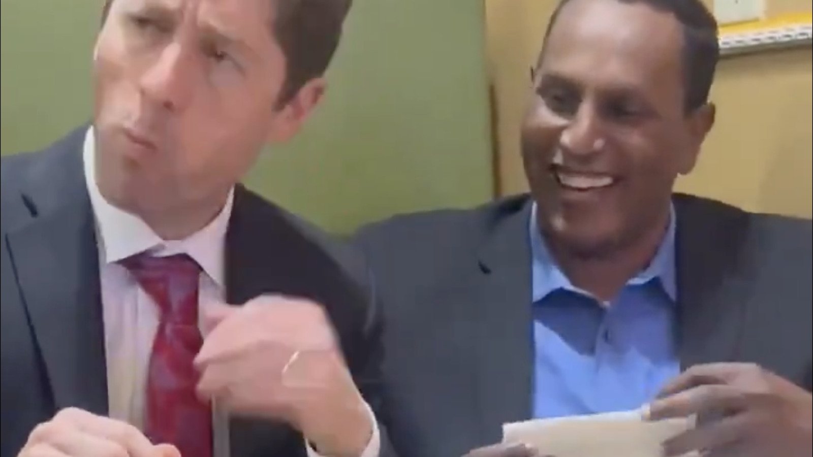 Minnesota Mayor Jacob Frey chows down on Somalian SLOP in front of the cameras and visibly looks like he wants to throw up….