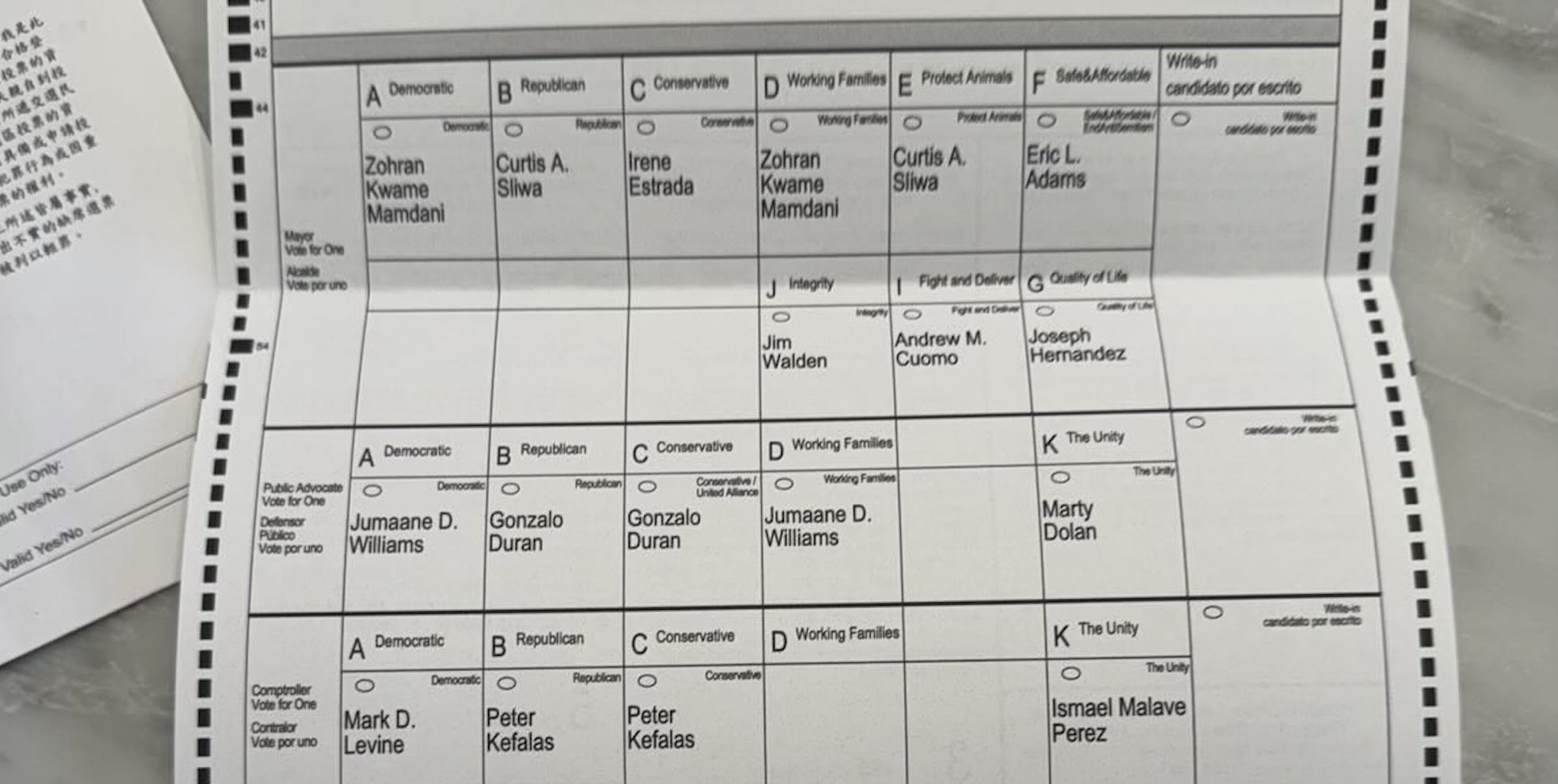 If I were voting in New York, I'd have no idea what I was supposed to select here because not only is Zohran Mamdani listed twice but so is Curtis Silwa if you look closely.
