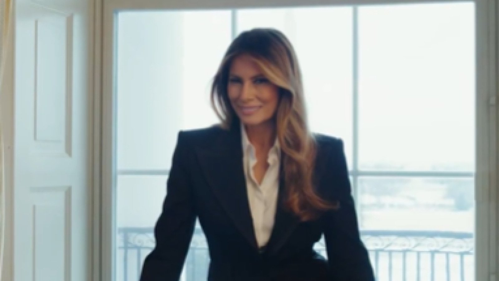 The trailer jumps from the first lady and president at the inauguration; to standing together outside of Mar-a-Lago; behind-the-scenes of the inauguration showing Baron Trump and Mrs. Trump’s father; to a series of images of the first lady; Air Force One; the presidential seal and more.