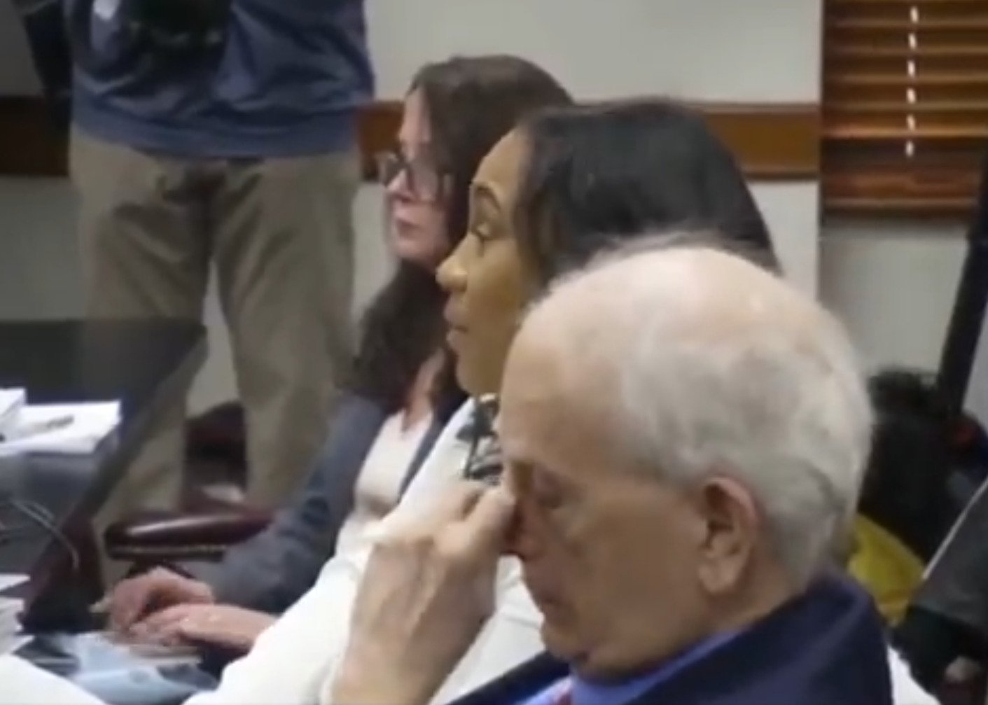 The trailer then shows Mrs. Trump entering a room where President Trump stands at a podium during a meeting and is rehearsing a speech.