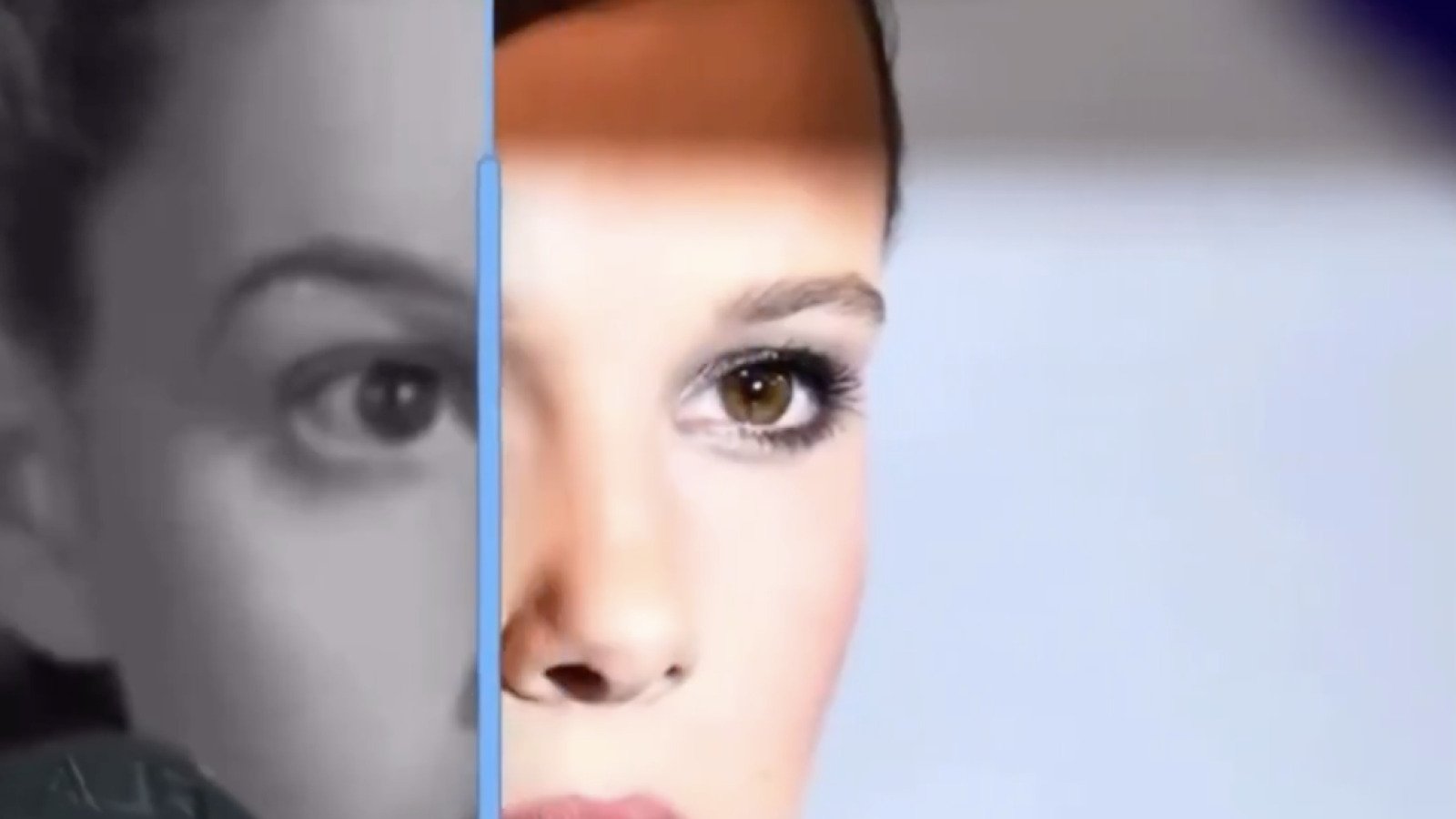 Young Judy Garland (as Dorothy in The Wizard of Oz, with braids) compared to Millie Bobby Brown.