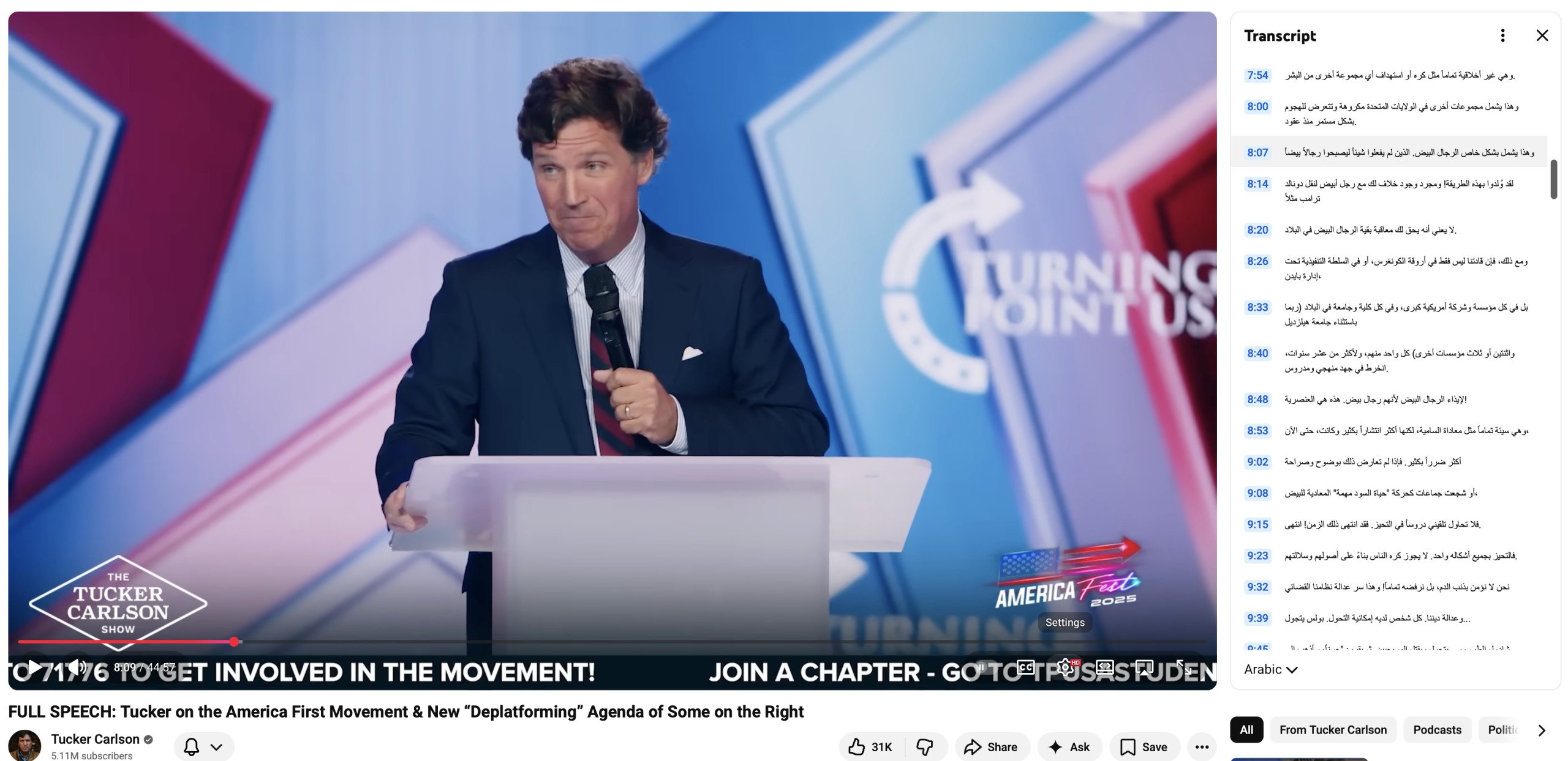 Oh, and before I give you the video, let me show you what Google keeps doing to the Closed Captioning of any Tucker Carlson video I watch recently.