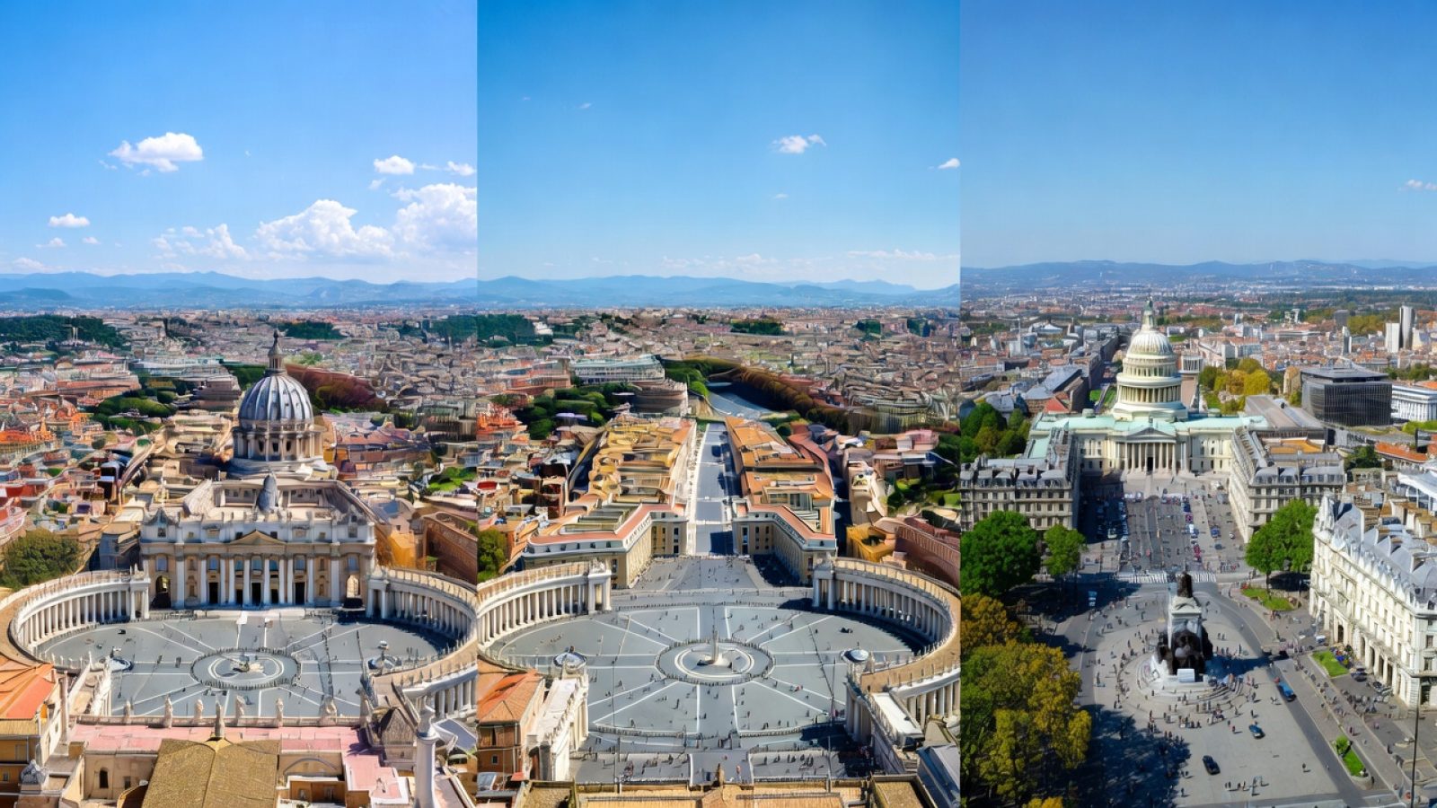 Central plazas with monumental alignments (e.g., St. Peter’s Square, National Mall, areas around St. Paul’s).