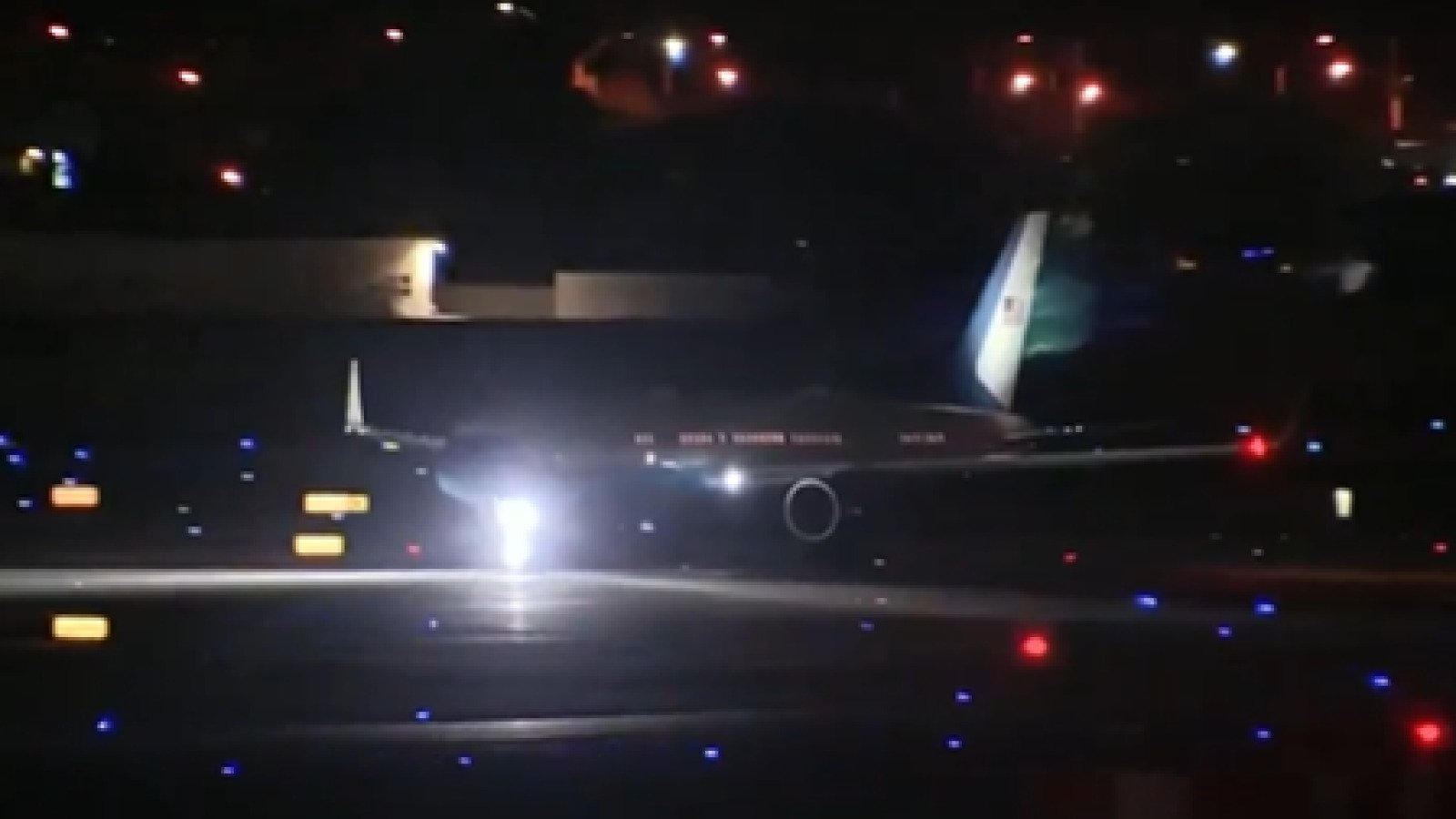 Police officers on motorcycles were traveling alongside the president’s motorcade. Air Force One parked on the opposite side of the airport from where it usually is located. The lights outside the plane were off when the motorcade arrived.
