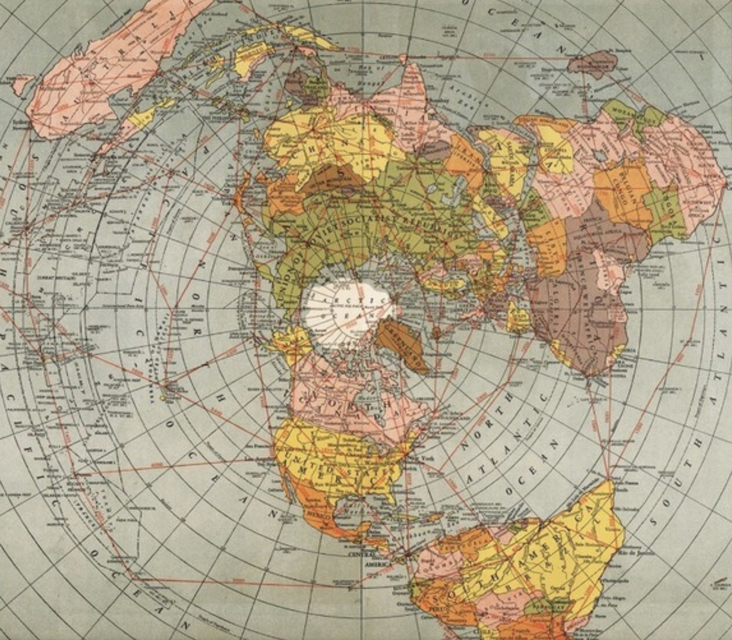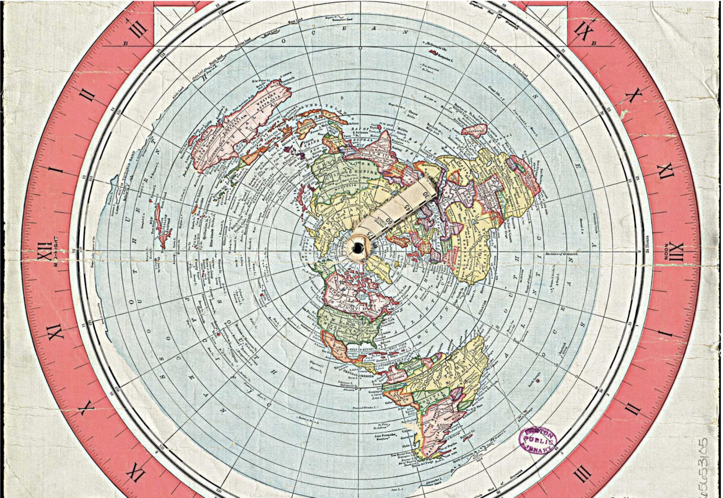 But…if you look at a “Flat Earth” map (sometimes also called a Azimuthal equidistant / Gleason-style projection) it looks very different!
