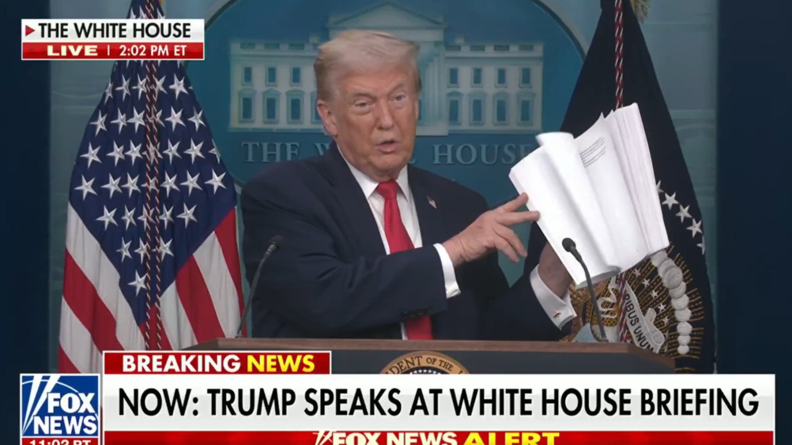 At a press conference, President Trump pulled out an extremely thick booklet of all his wins from the past year.