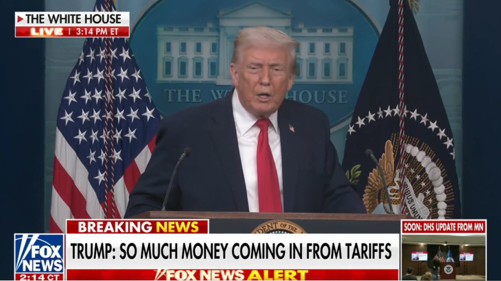 Tyler PagerWhen will those Americans get those checks?President TrumpWell, I am going to — the tariff money is so substantial. That’s coming in, that I’ll be able to do $2,000 sometime. I would say toward the end of the year.Zolan Kanno-YoungsDon’t you need Congress? Don’t you need Congress to help you with that?President TrumpNo, I don’t believe we do. We have it coming in from other sources.