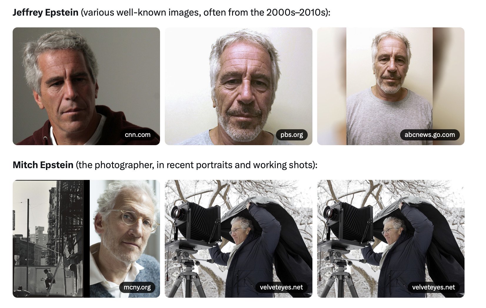 Public discussions, including social media, have occasionally speculated on a link due to the shared last name—especially in contexts like Mira Nair’s past marriage to Mitch Epstein—but sources explicitly clarify they are unrelated, attributing any perceived similarity to common Jewish immigrant heritage rather than direct ties. No evidence from biographies, family records, or investigations into Jeffrey Epstein’s network suggests any interaction or kinship with Mitch Epstein.