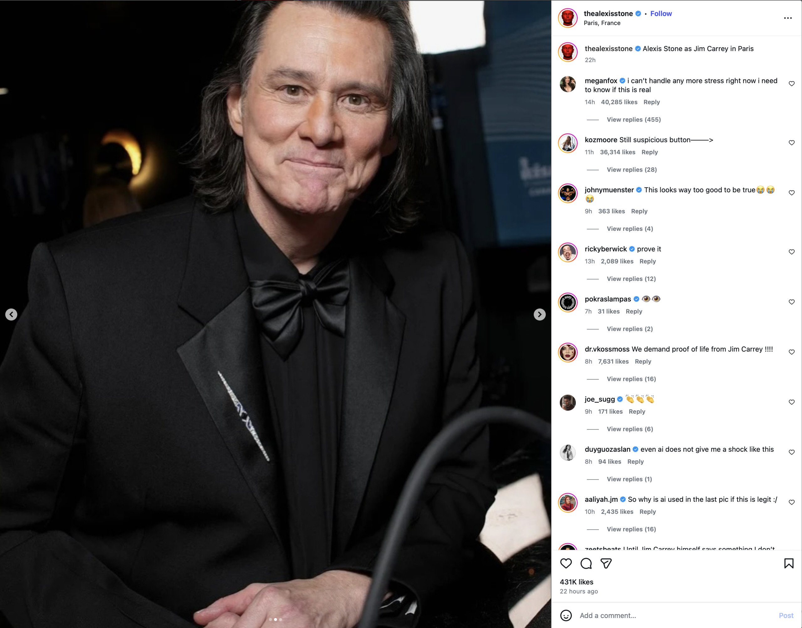 Take a look at these three images and then look at the caption he posted with them in the top right which reads: "Alexis Stone as Jim Carrey in Paris":