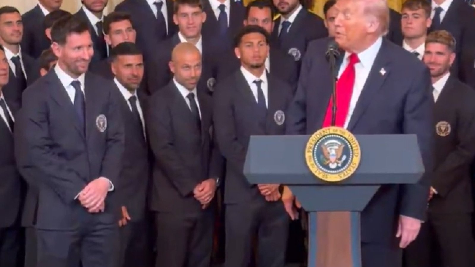 “Today, we’re thrilled to host the 2025 MLS Cup Champions, Inter Miami … and it’s my distinct privilege to say what no American president has ever had the chance to say before: welcome to the White House, Lionel Messi,” Trump said at the event.