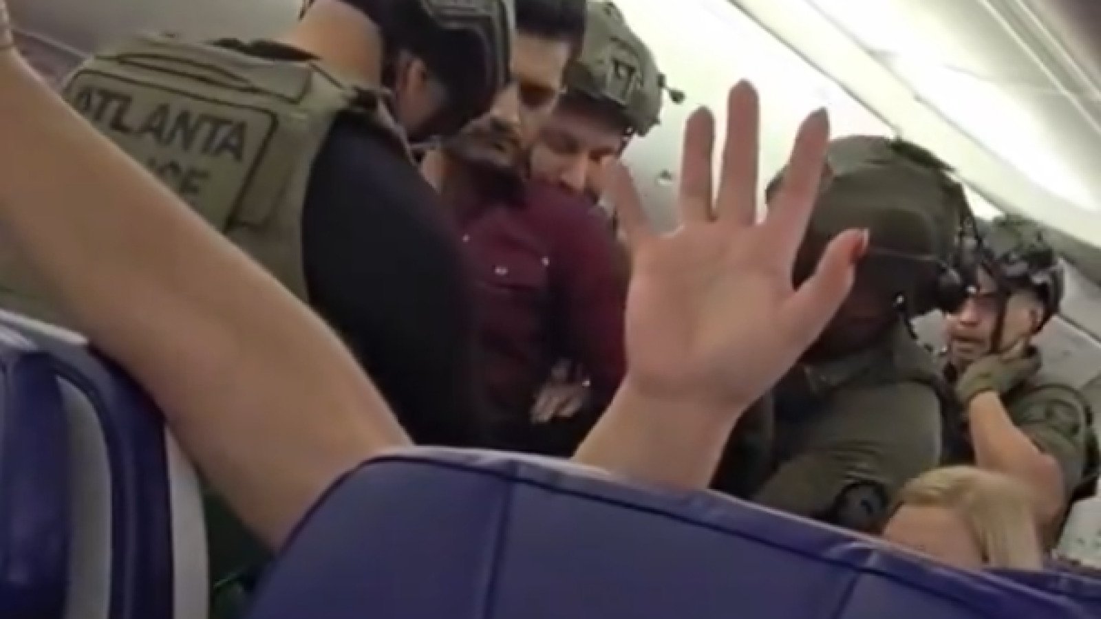 In a terrifying incident, passengers were forced to put their hands up as the SWAT team detained a passenger.