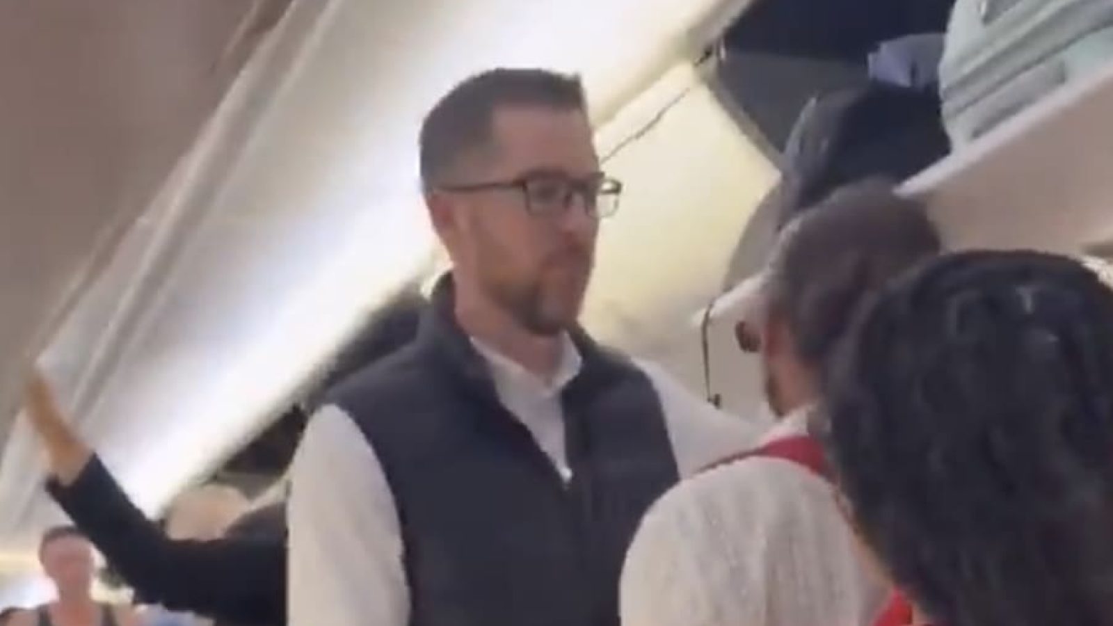 “Sir you need to step off the aircraft,” a flight attendant says.