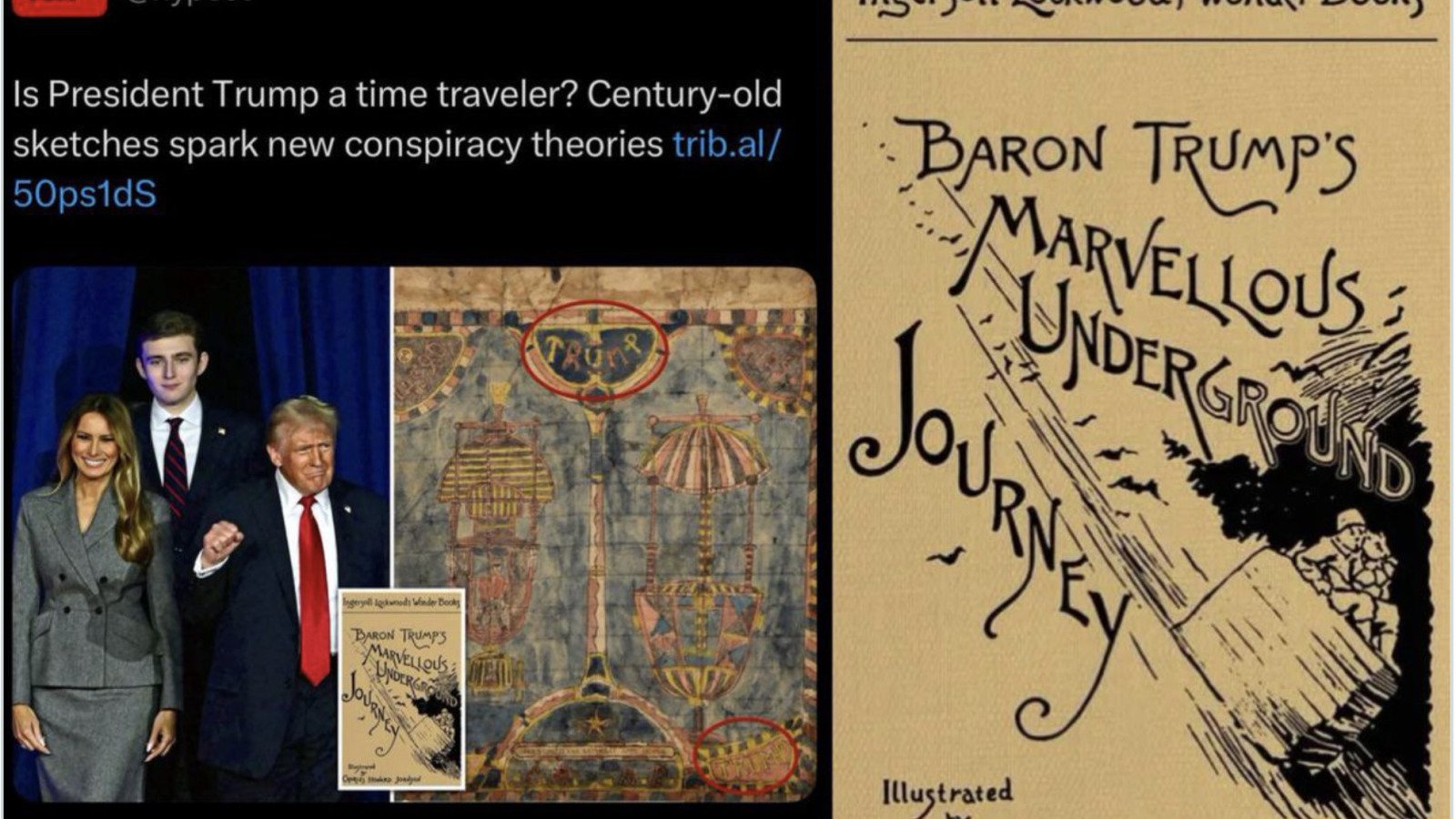 The question has been circulating on conspiracy theory web sites for several months and is backed by various pieces of “evidence” (such as Donald Trump’s uncle John Trump’s purported relationship with Nikola Tesla). Now a series of books published over century ago is receiving attention for their seemingly all-too-eerie connections to the Trump family. The books, one of which is titled Baron Trump’s Marvelous Underground Journey, have been discussed on both reddit and 4chan: