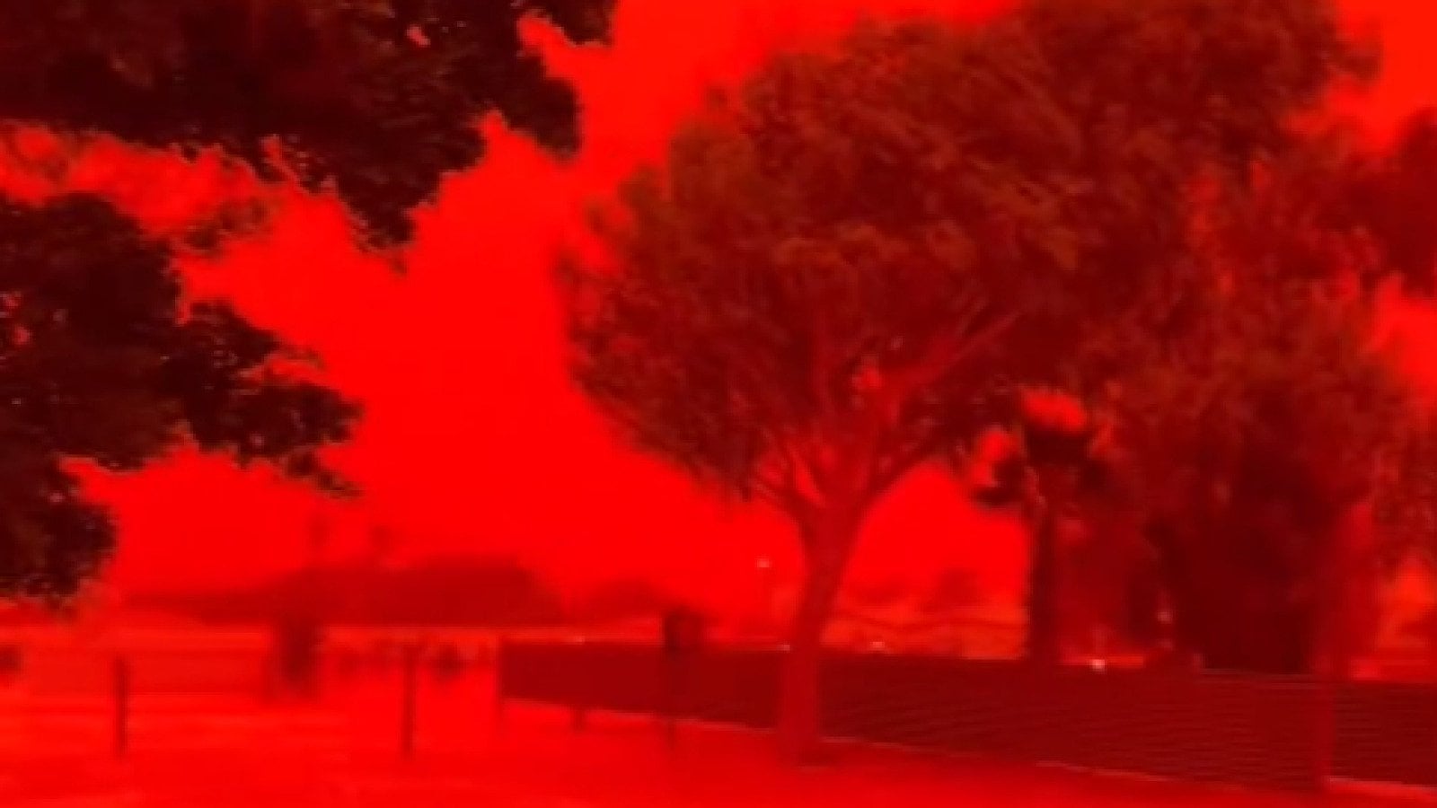 Videos on Facebook and X show the skies in Denham, Australia, turning completely red, causing panic among some residents.