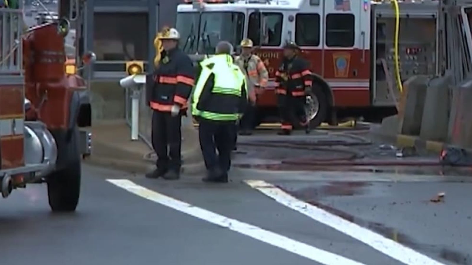 According to the New York Post, the crash happened late Tuesday morning when an electric vehicle struck the Bedford Toll Plaza and caught fire.