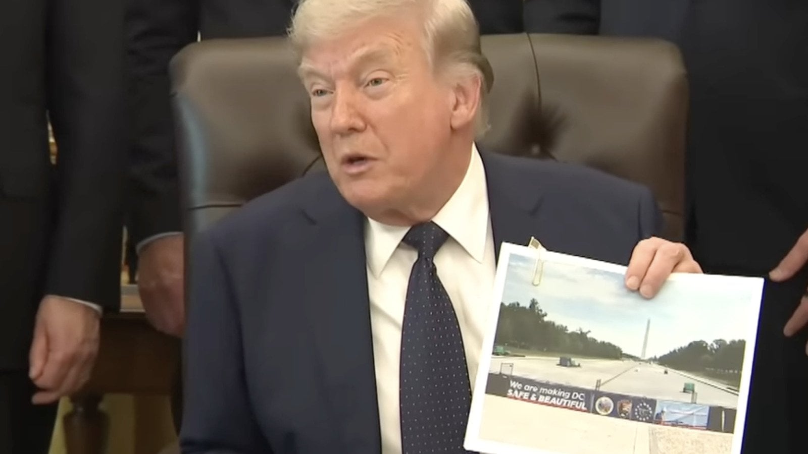 President Donald Trump touted plans Thursday to coat the Lincoln Memorial’s reflecting pool in an “American flag blue” hue, one of his latest construction efforts to refashion government buildings and monuments in Washington, D.C.