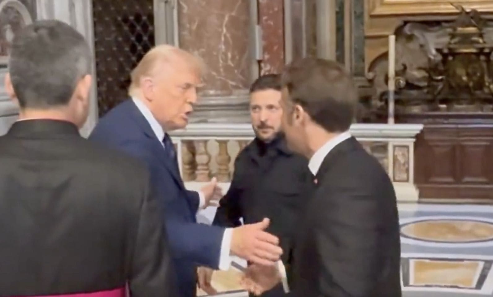 As you've likely seen by now, there was a moment at Pope Francis' funeral where Trump and Zelensky were talking and then Macron walked up....